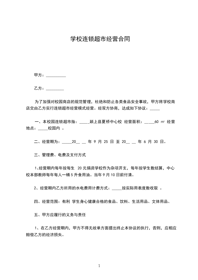 6、乙方不得经营上级工商、卫生、教育、安全等部门规定禁止售卖的商品,不得售卖有任何问题和“三无”产品、烟酒、玩具和其他学校不允许经营的商品。如发生事故将追究承包人的相关责任。承包期内除合法经营外,还要认真打扫超市内外的卫生。