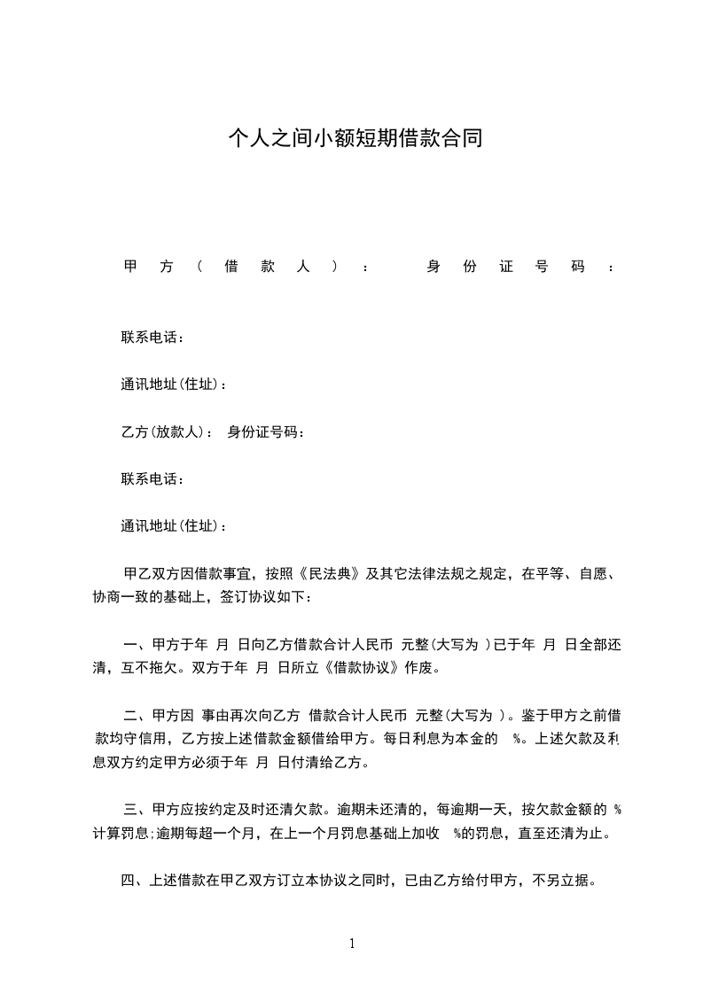 甲方(借款人): 身份证号码: