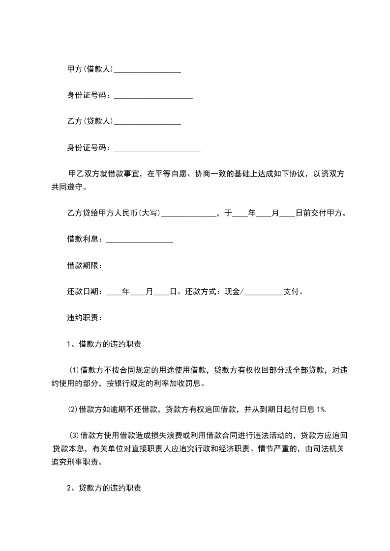 乙方贷给甲方人民币(大写)______________,于____年____月____日前交付甲方。