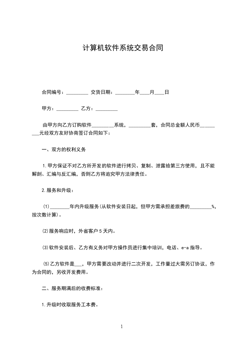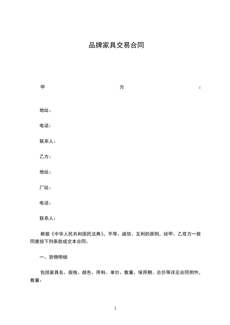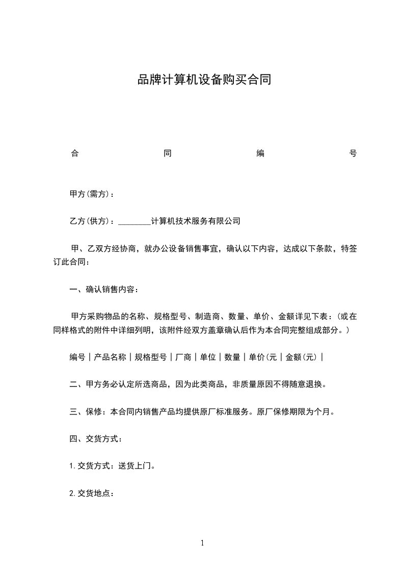 一、甲方向乙方购买下列产品(价格单位为人民币_____元)