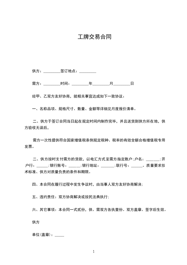 五、本合同壹式贰份,由双方加盖合同章后生效。