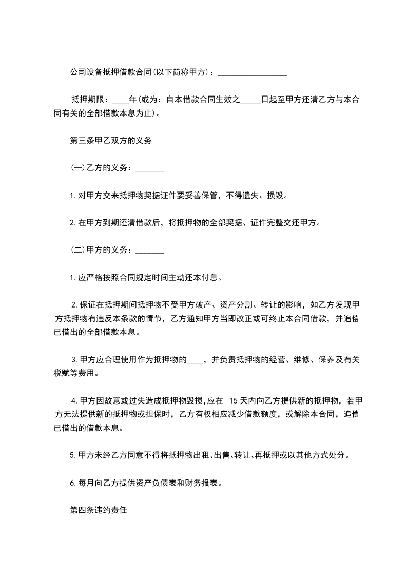 1、乙方未按本合同第三条规定的借款用途使用借款的,甲方有权收回全部借款,对违约使用的部分,按同期中国人民银行规定的贷款利率加收罚息。