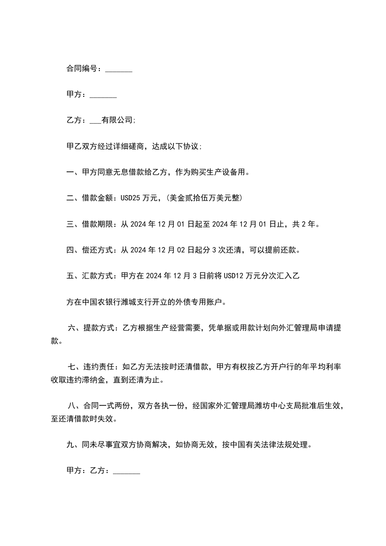 一、借款金额:乙方出借给甲方人民币(大写) 万元整,于_____年_____月_____日前交付甲方。