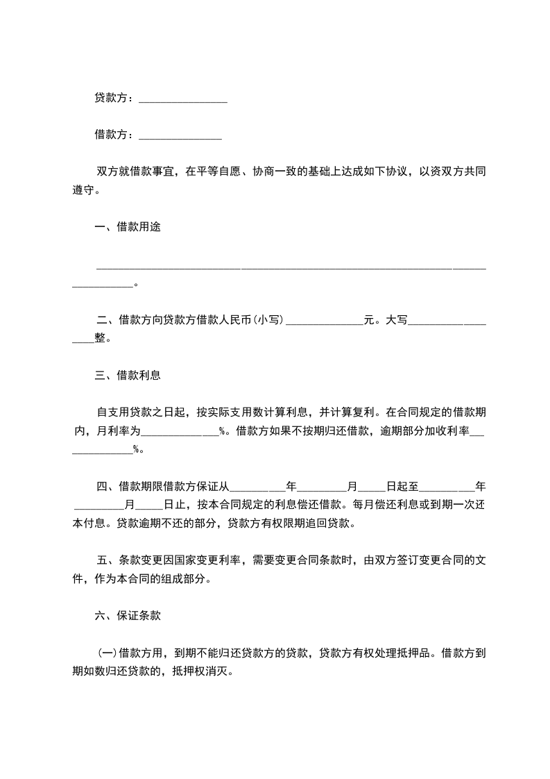 乙方因 ,向甲方申请借款, 甲乙双方就借款事宜,在平等自愿、协商一致的基础上达成如下协议,双方共同遵守。