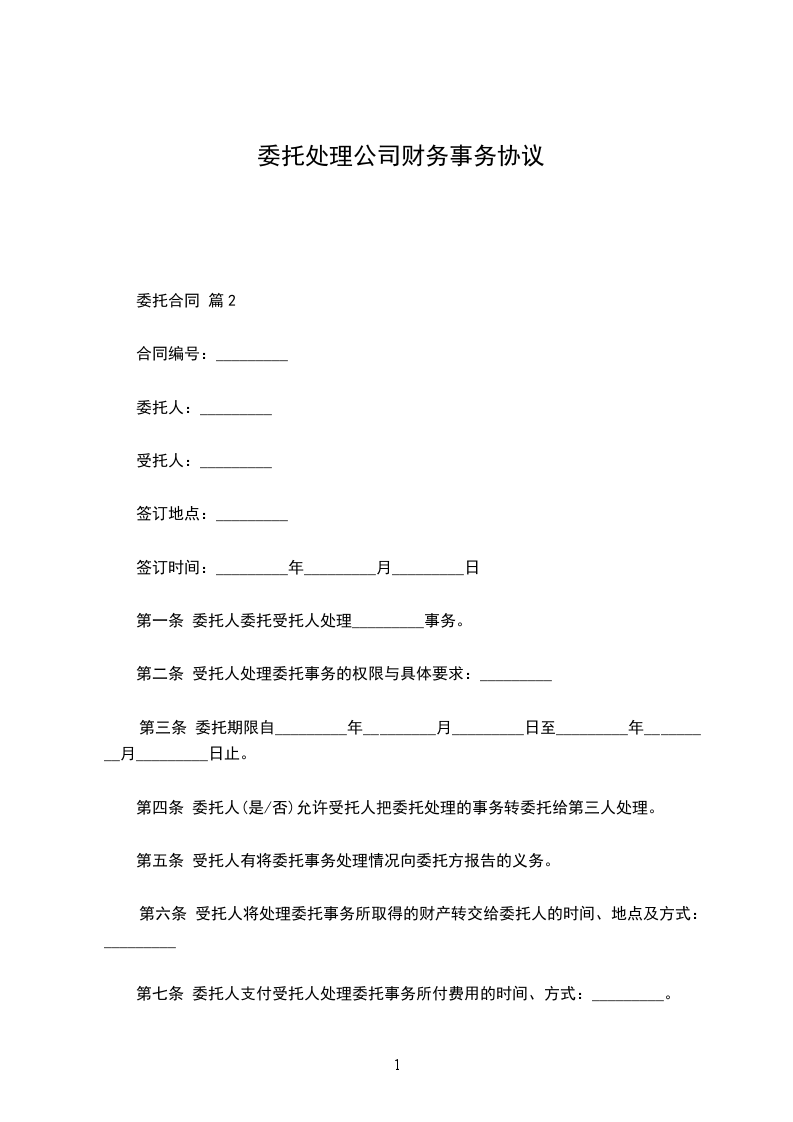 第六条 受托人将处理委托事务所取得的财产转交给委托人的时间、地点及方式:_________
