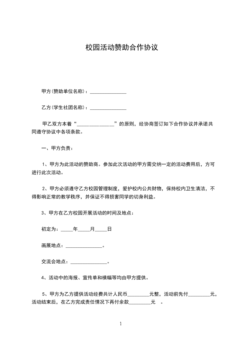 三、活动费用支付方式:_____年_____月_____日前乙方以现金方式向甲方支付_____万元冠名费;同时为本次活动提供价值_____元奖品(含__________、__________、_____,依照具体奖项设定)。