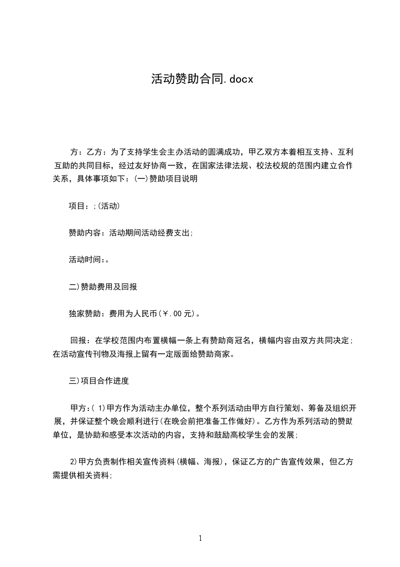 1.乙方向甲方支付_____万元冠名费,提供价值_____万元奖品。