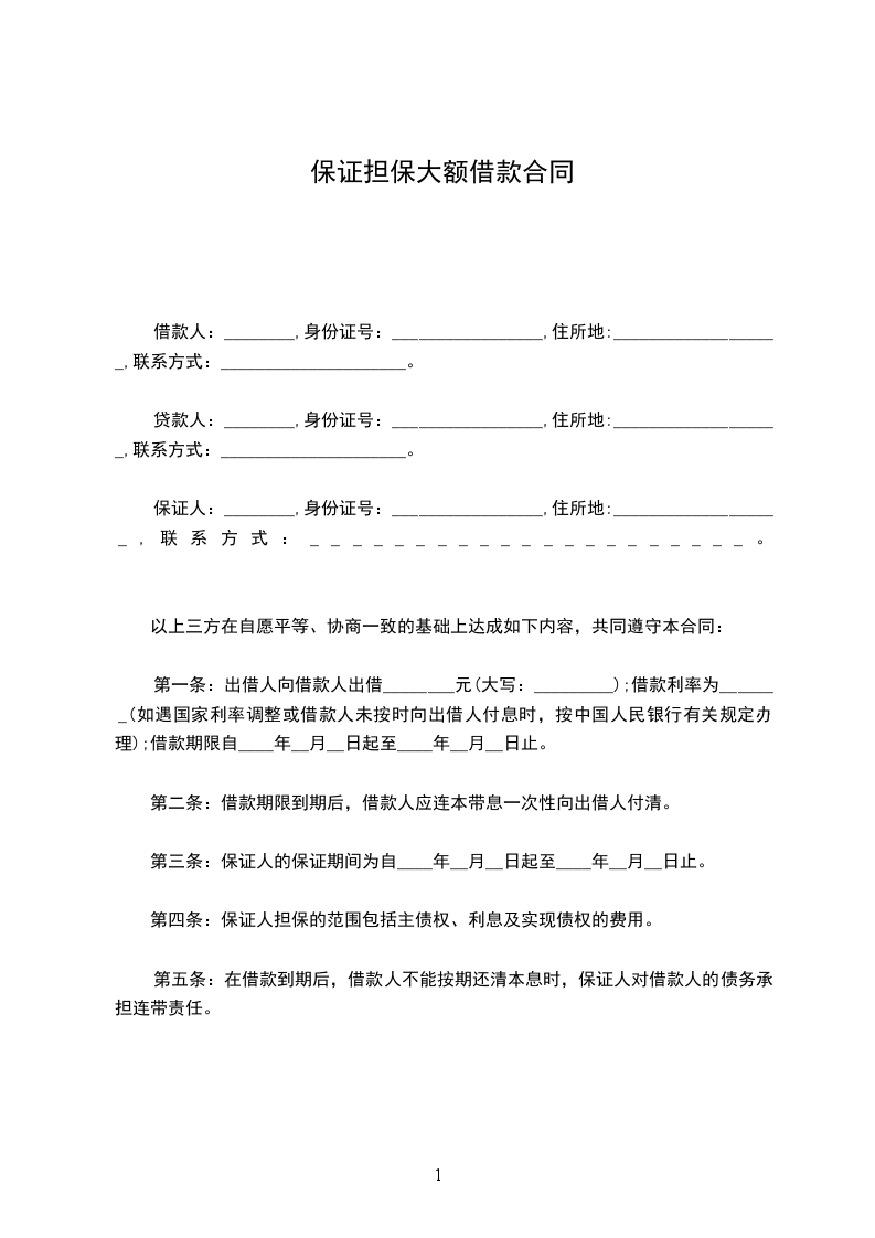 保证人:________,身份证号:_________________,住所地:___________________,联系方式:_____________________。