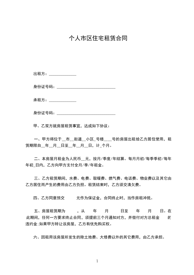 2、出租时间:________年,________年租金元,一次性付清,截止到________年____月____日租户退房搬走,租户另交元押金,退房时,屋内家具无损坏,元退还。