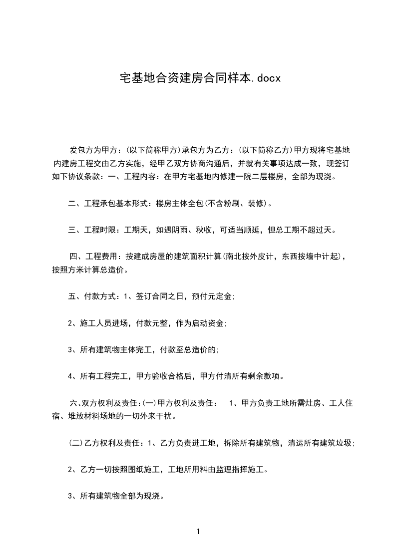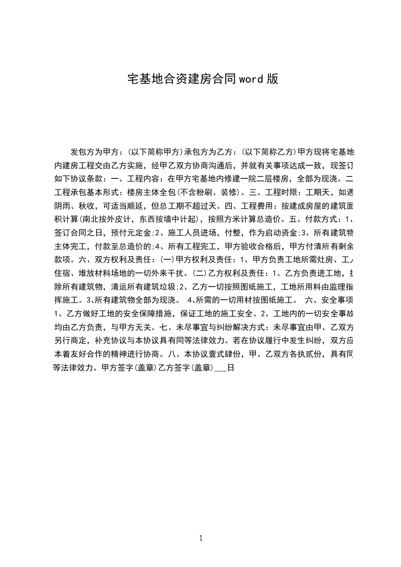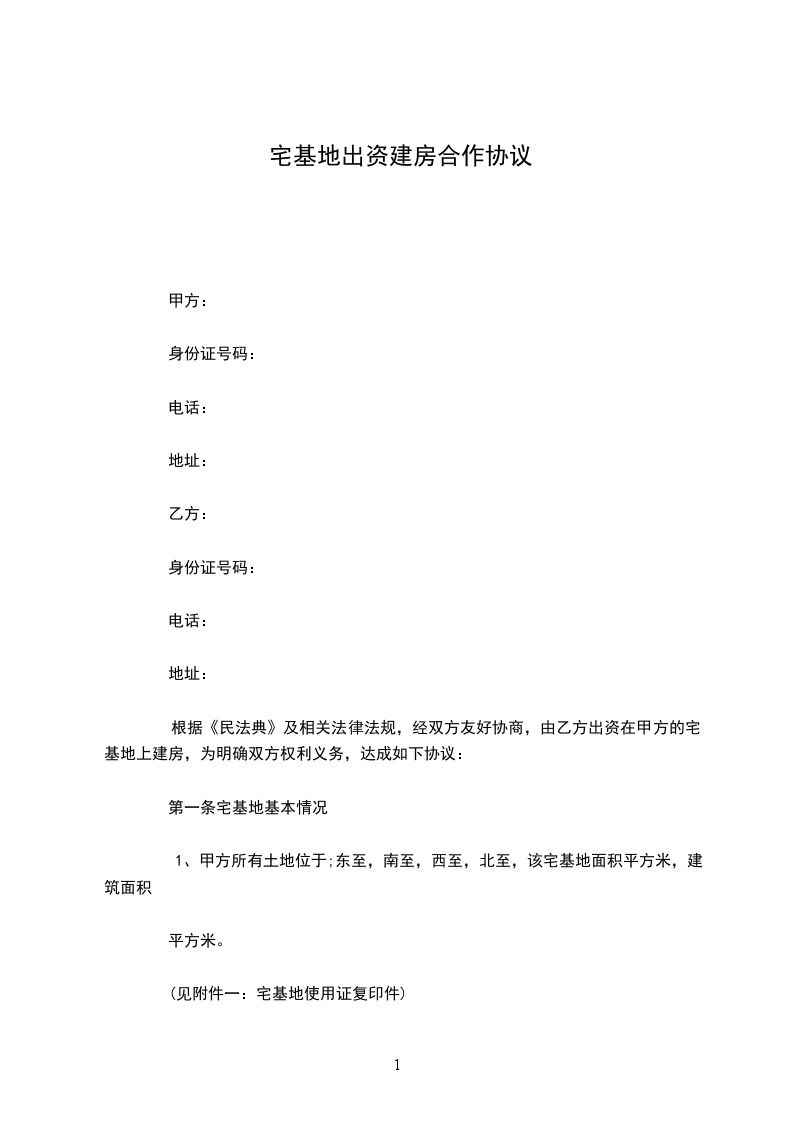 一、甲方提供其自有的位于的宅基地用于建造房屋,该宅基地占地面积约平方米,宅基地使用权证编号为: