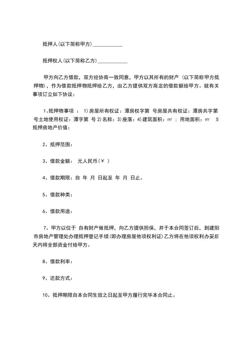甲方向乙方借款,双方经协商一致同意,甲方以其所有的财产 (以下简称甲方抵押物),作为借款抵押物抵押给乙方,由乙方提供双方商定的借款额给甲方。就有关事项订立如下协议: