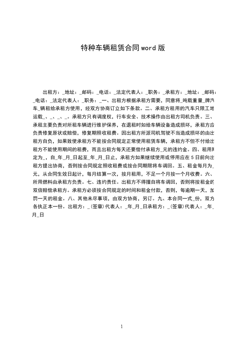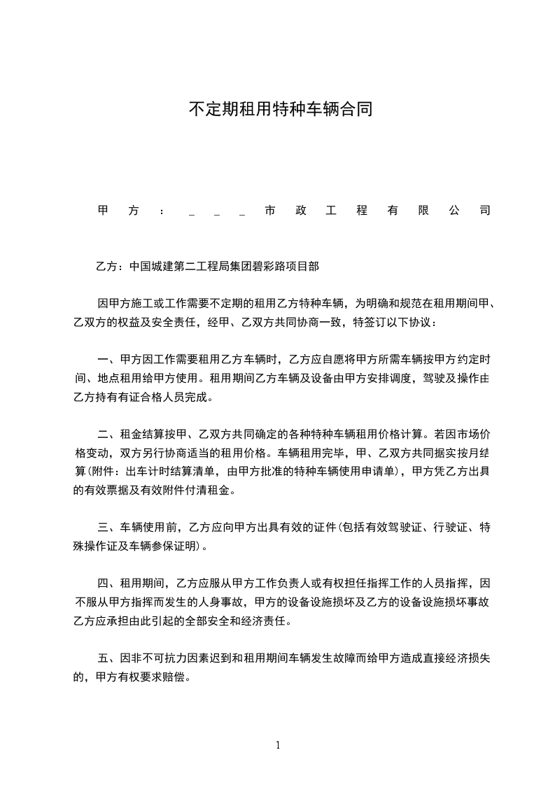 因甲方施工或工作需要不定期的租用乙方特种车辆,为明确和规范在租用期间甲、乙双方的权益及安全责任,经甲、乙双方共同协商一致,特签订以下协议: