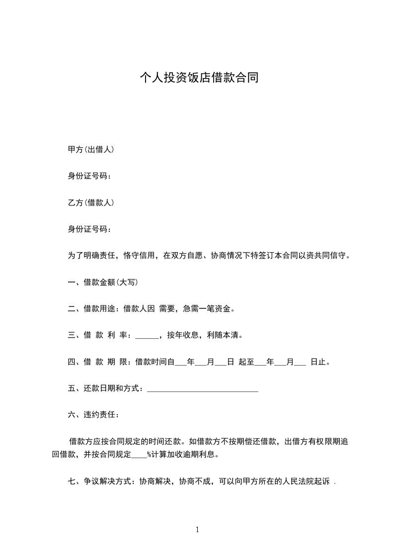 1、未经双方同意,任何一方当事人不得擅自变更或解除合同。如一方当事人要求变更或解除合同,应在__日内通知另一方当事人,并达成书面协议。本合同变更或解除后,借款方占用的借款和应付的利息仍应按本合同的规定偿付。