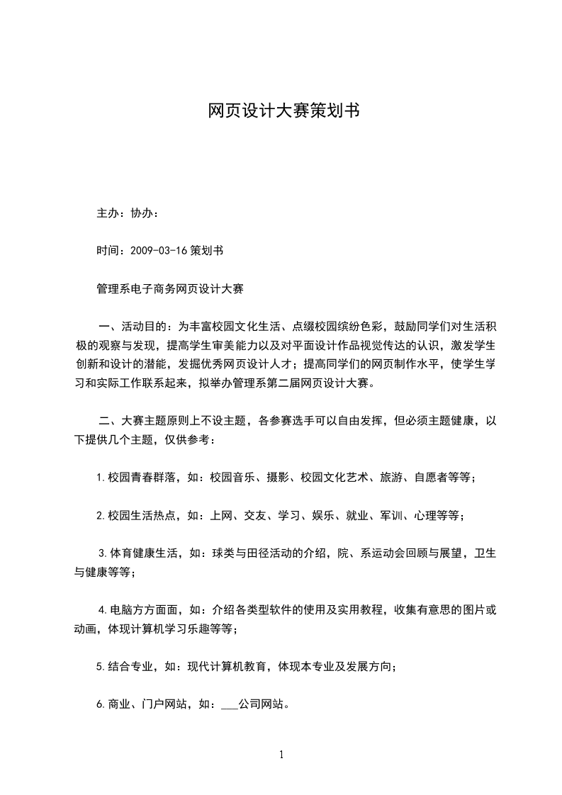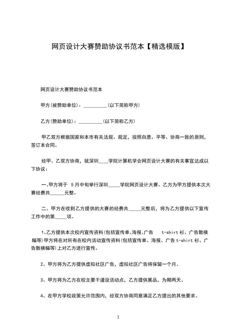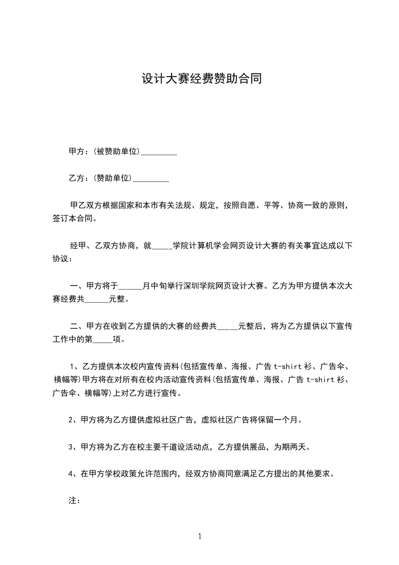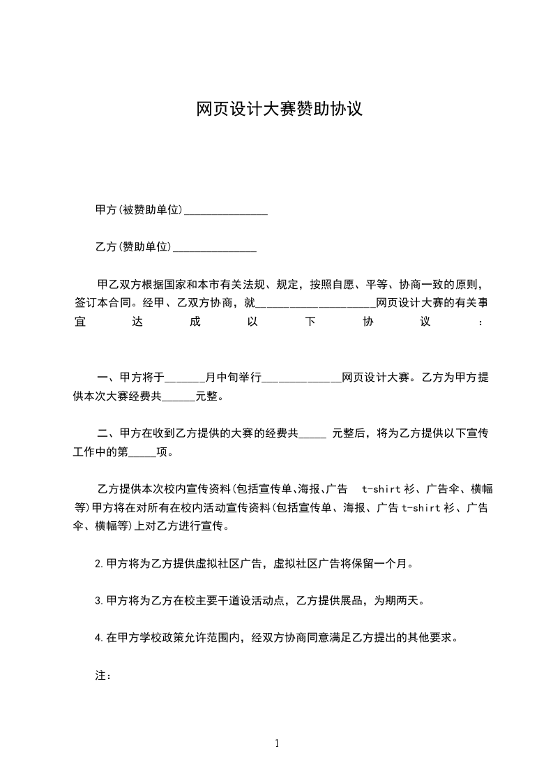 一、甲方将于_______月中旬举行______________网页设计大赛。乙方为甲方提供本次大赛经费共______元整。