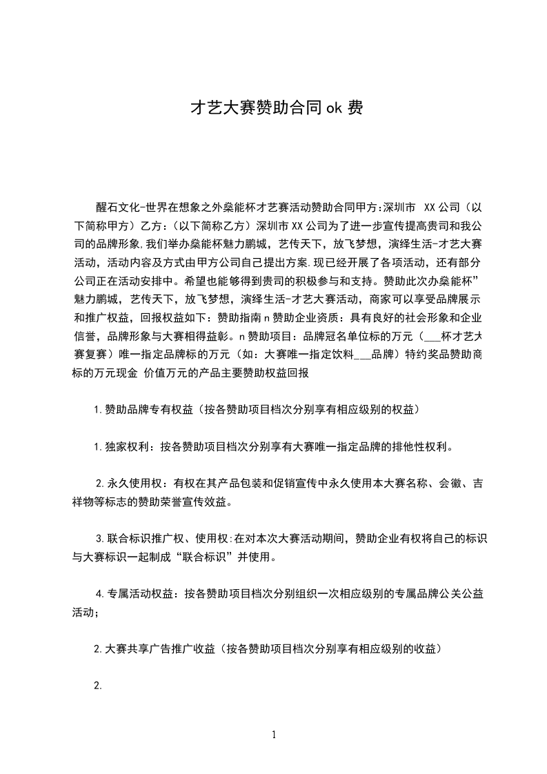 二、甲方在收到乙方提供的大赛的经费共_____ 元整后,将为乙方提供以下宣传工作中的第_____项。
