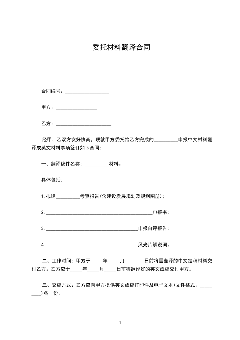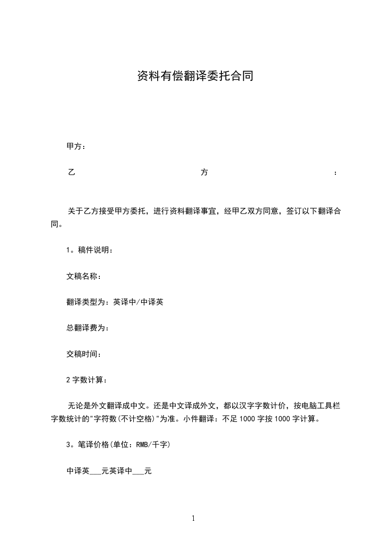 关于乙方接受甲方委托,进行资料翻译事宜,经甲乙双方同意,签订以下翻译合同。