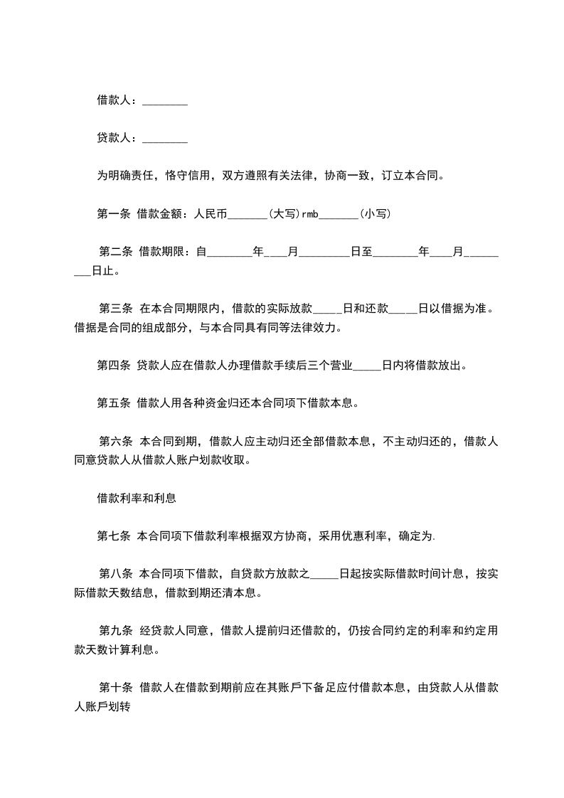 3.贷款利息,自支用贷款之日起,以支用额按月息___‰计算,按季(或月)结息。甲方不按期归还贷款,逾期部分加收利息__%;不按规定用途使用贷款,挪用部门罚收利息___%;超储、积压设备、材料占用的贷款,加收利息__%。