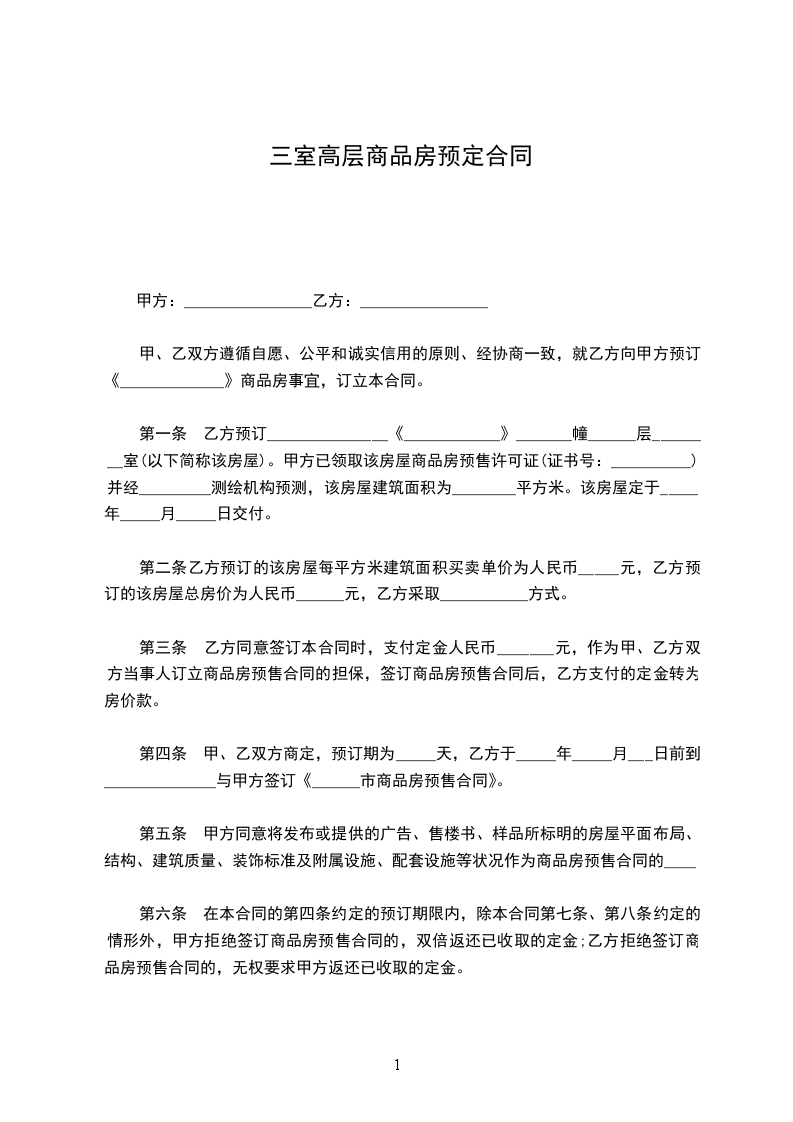 第三条 买受人所购房屋的基本情况买受人购买的房屋为本合同第一条规定的项目,即____________________,属砖混结构,层高为_______________, 建筑总层数为_____层。
