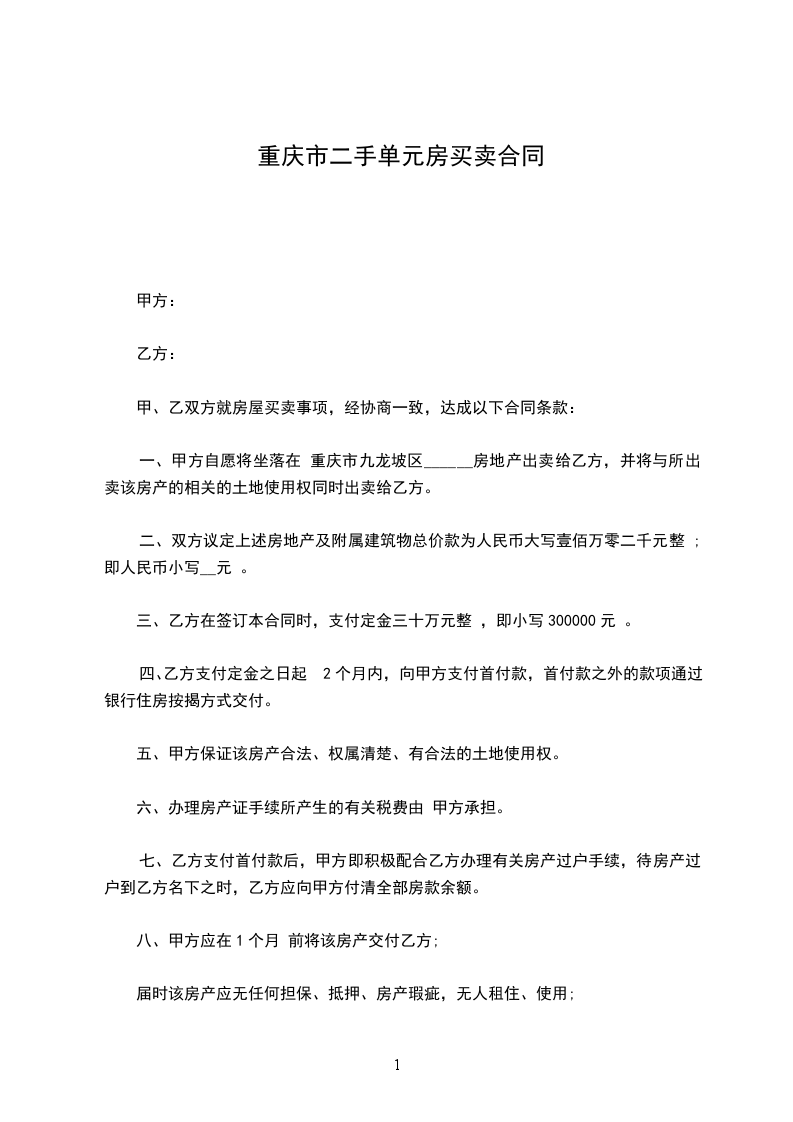 一、甲方自愿将坐落在 重庆市九龙坡区______房地产出卖给乙方,并将与所出卖该房产的相关的土地使用权同时出卖给乙方。