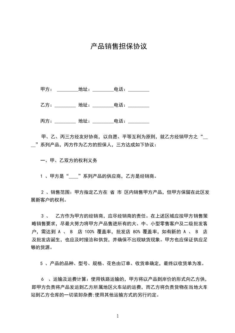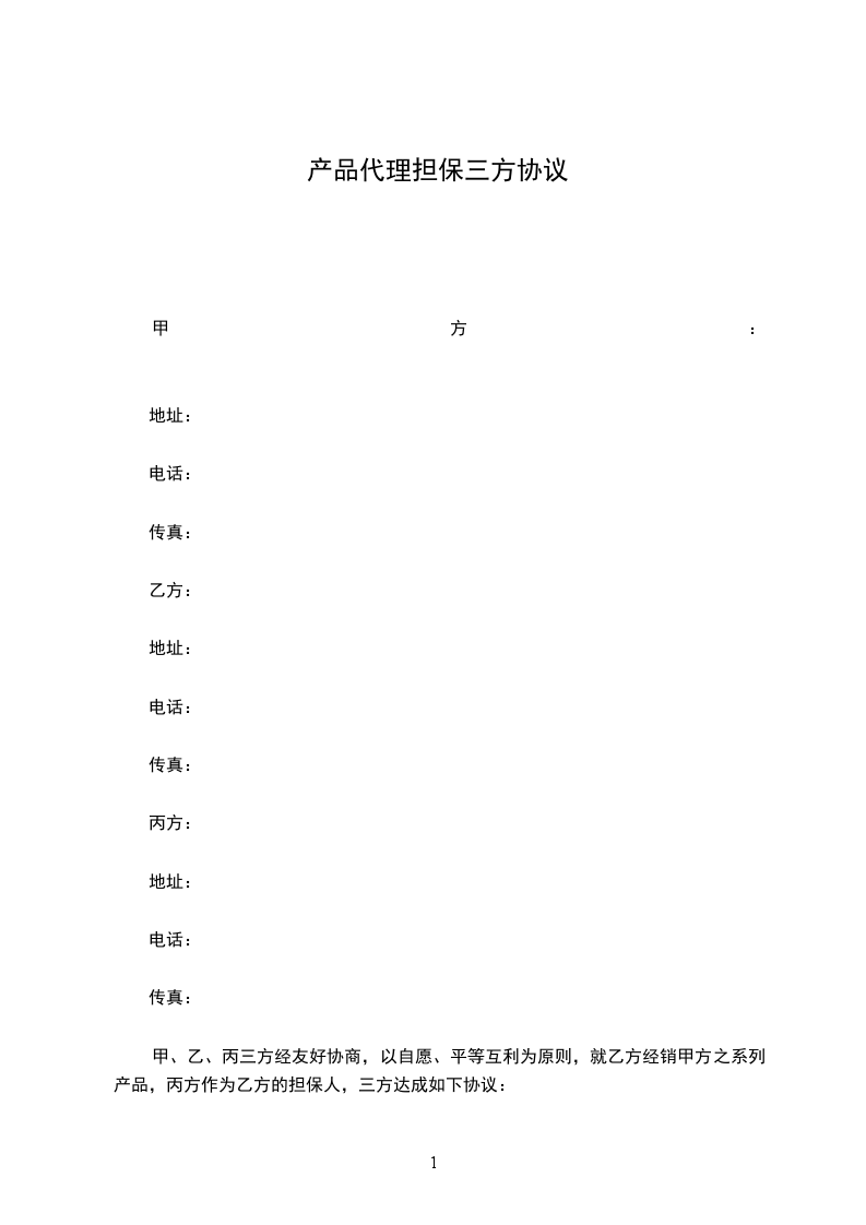 甲、乙、丙三方经友好协商,以自愿、平等互利为原则,就乙方经销甲方之系列产品,丙方作为乙方的担保人,三方达成如下协议: