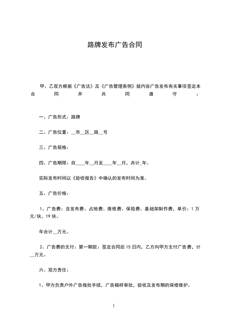 1、甲方负责户外广告报批手续,广告稿样审批,验收及发布期的保修维护。