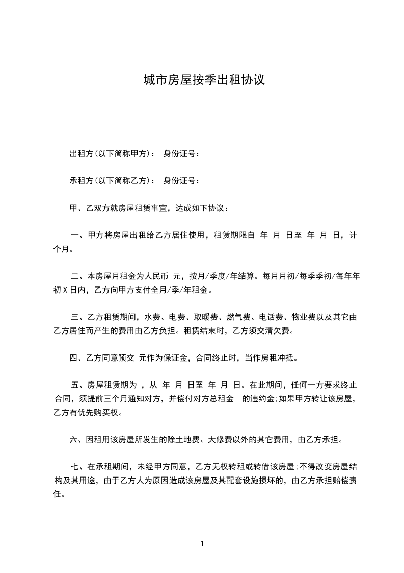 五、房屋租赁期为 ,从 年 月 日至 年 月 日。在此期间,任何一方要求终止合同,须提前三个月通知对方,并偿付对方总租金 的违约金;如果甲方转让该房屋,乙方有优先购买权。
