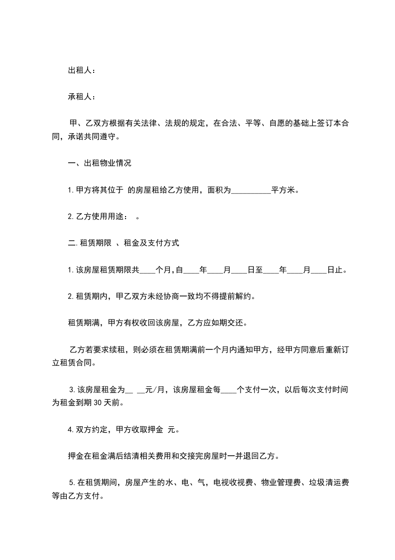 1.甲方将其位于 的房屋租给乙方使用,面积为__________平方米。