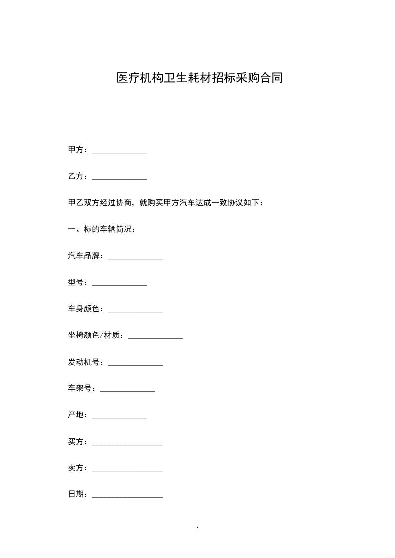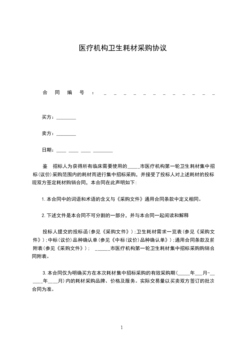 甲、乙双方根据__________________年_____月_____日__________医疗机构药品器械招标有限公司对__________市医疗机构医用耗材集中招标采购(招标编号)的招标结果和招标文件的要求,经双方协商,一致达成如下供货合同:_________________
