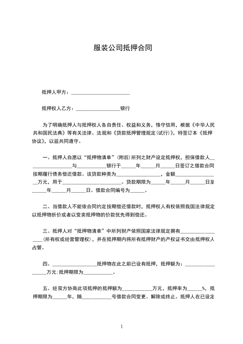 抵押合同使用说明