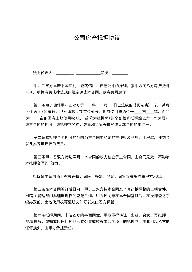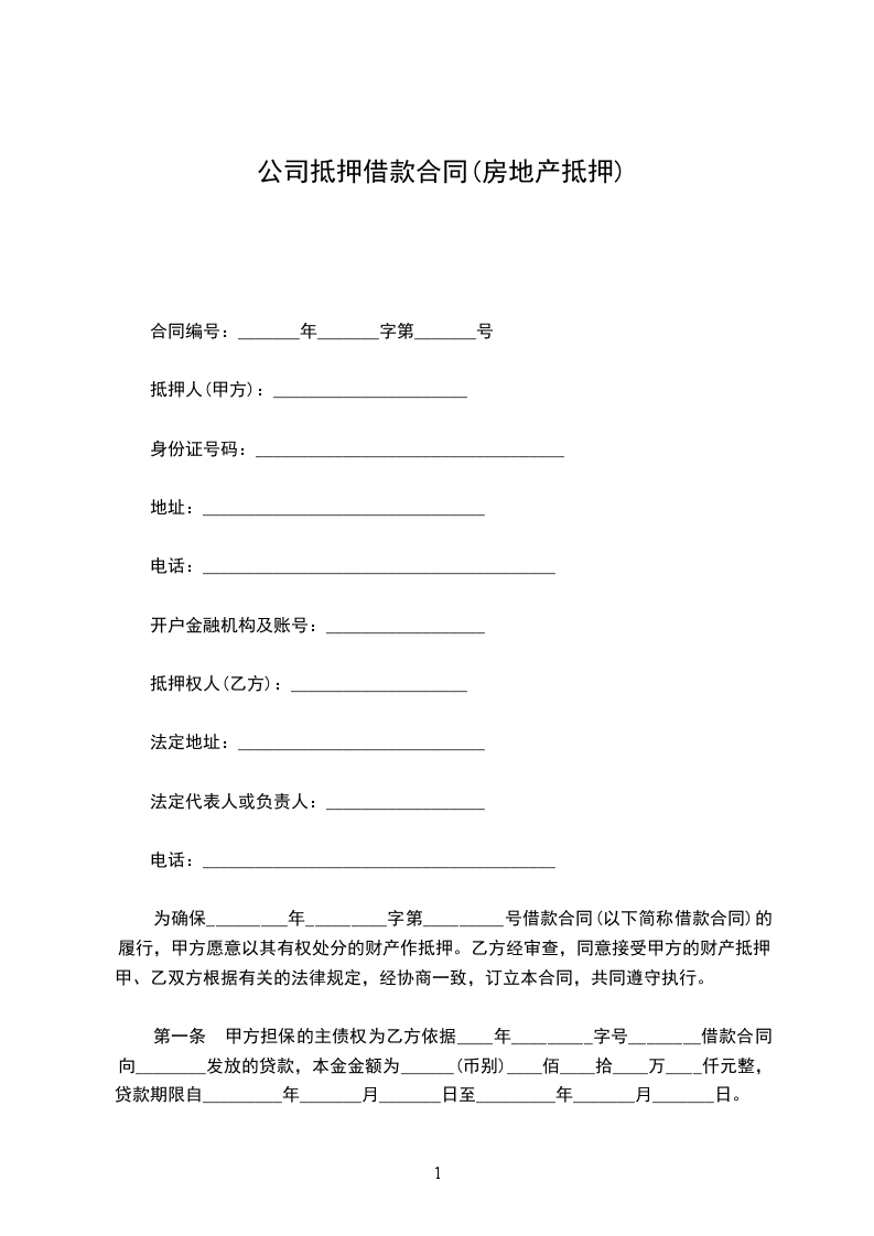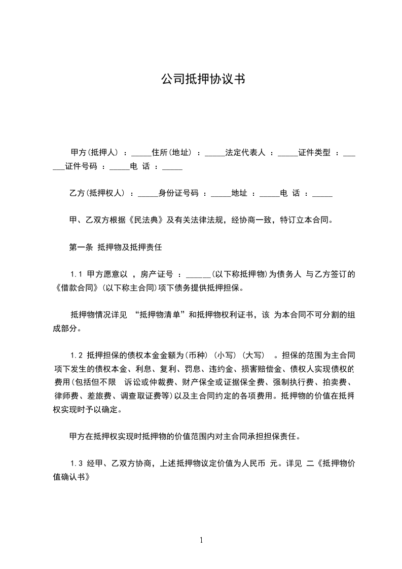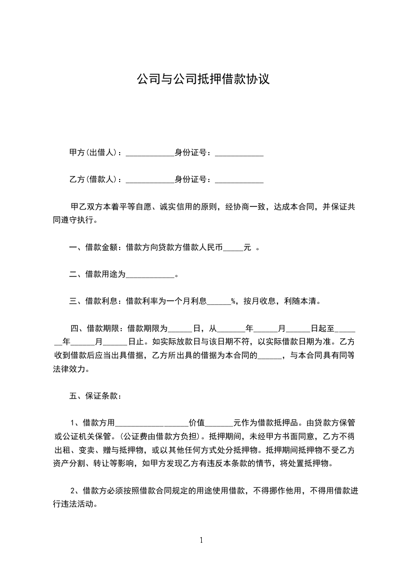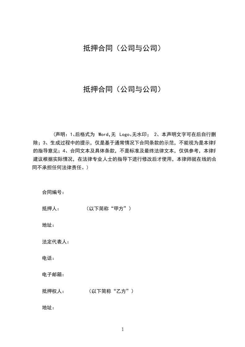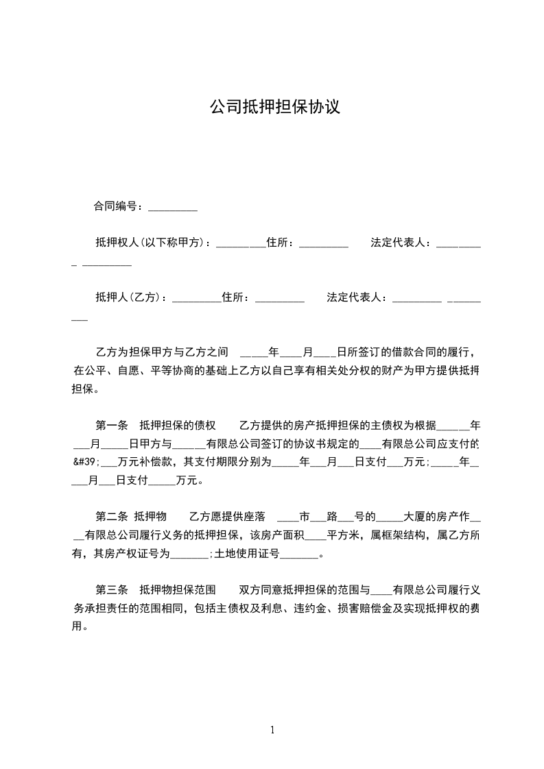 抵押合同(公司与公司)