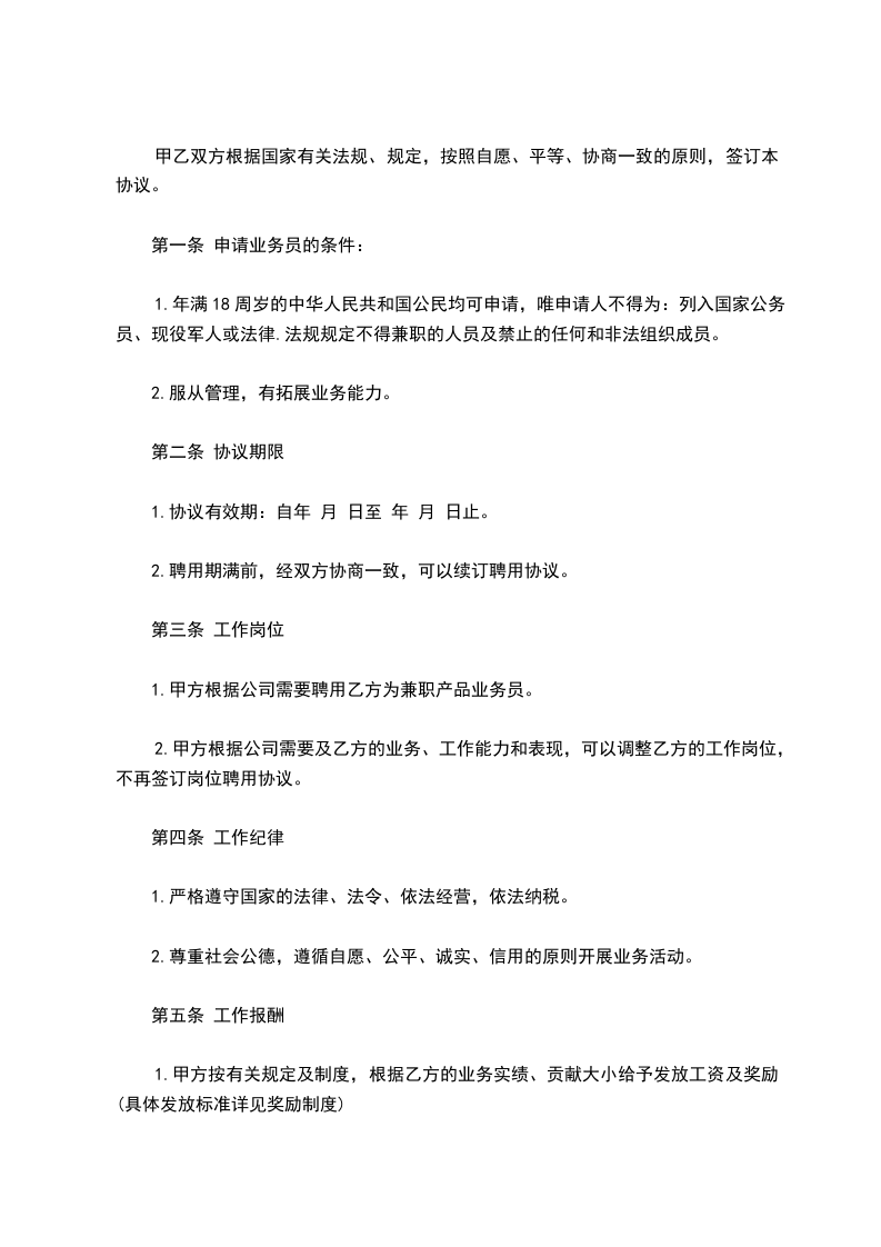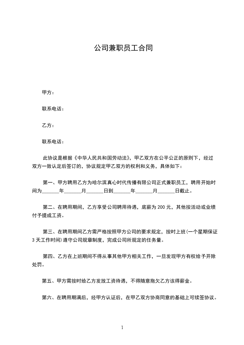 第5条 兼职劳动报酬