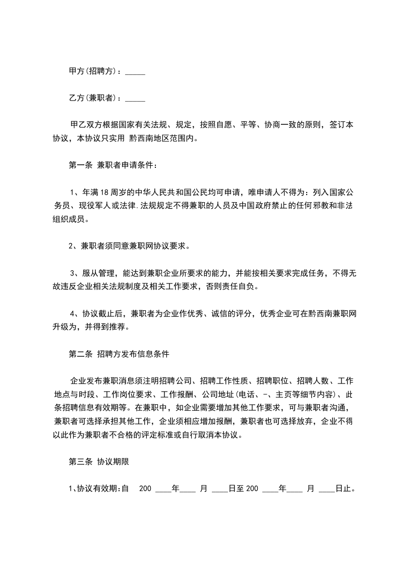 3.1 乙方在被聘用期间执行非全日制工作制,即在保证完成甲方安排工作任务情况下工作时间有乙方自行安排。