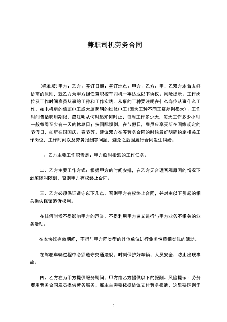 5.1 乙方完成本合同约定的工作内容后,甲方应当以货币形式向乙方支付劳动报酬,劳动报酬标准为:每年 元。