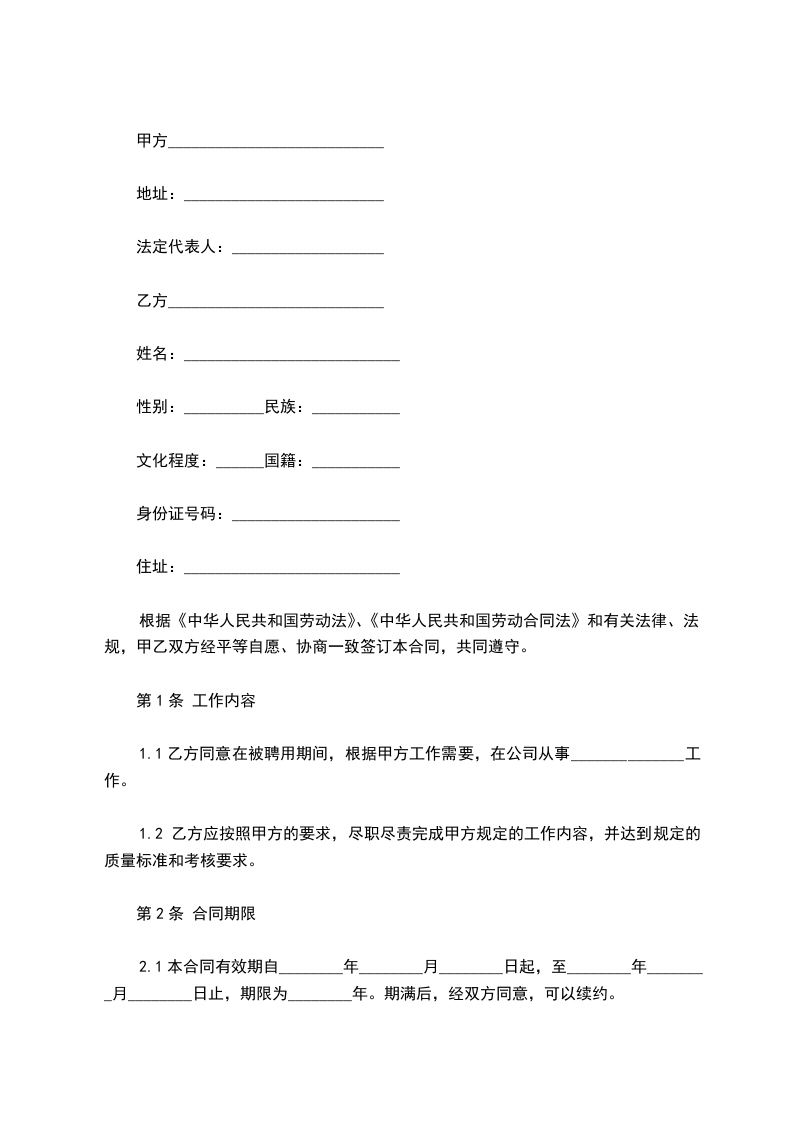 1.1乙方同意在被聘用期间,根据甲方工作需要,在公司从事______________工作。