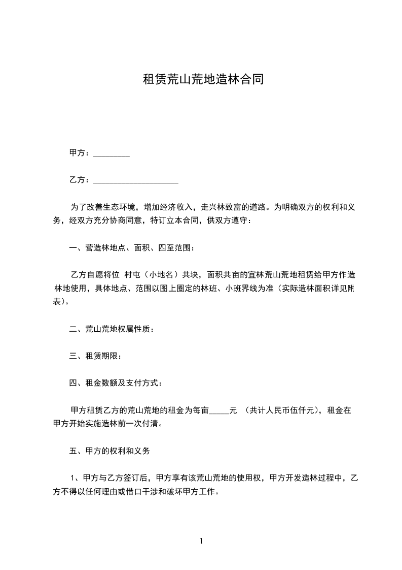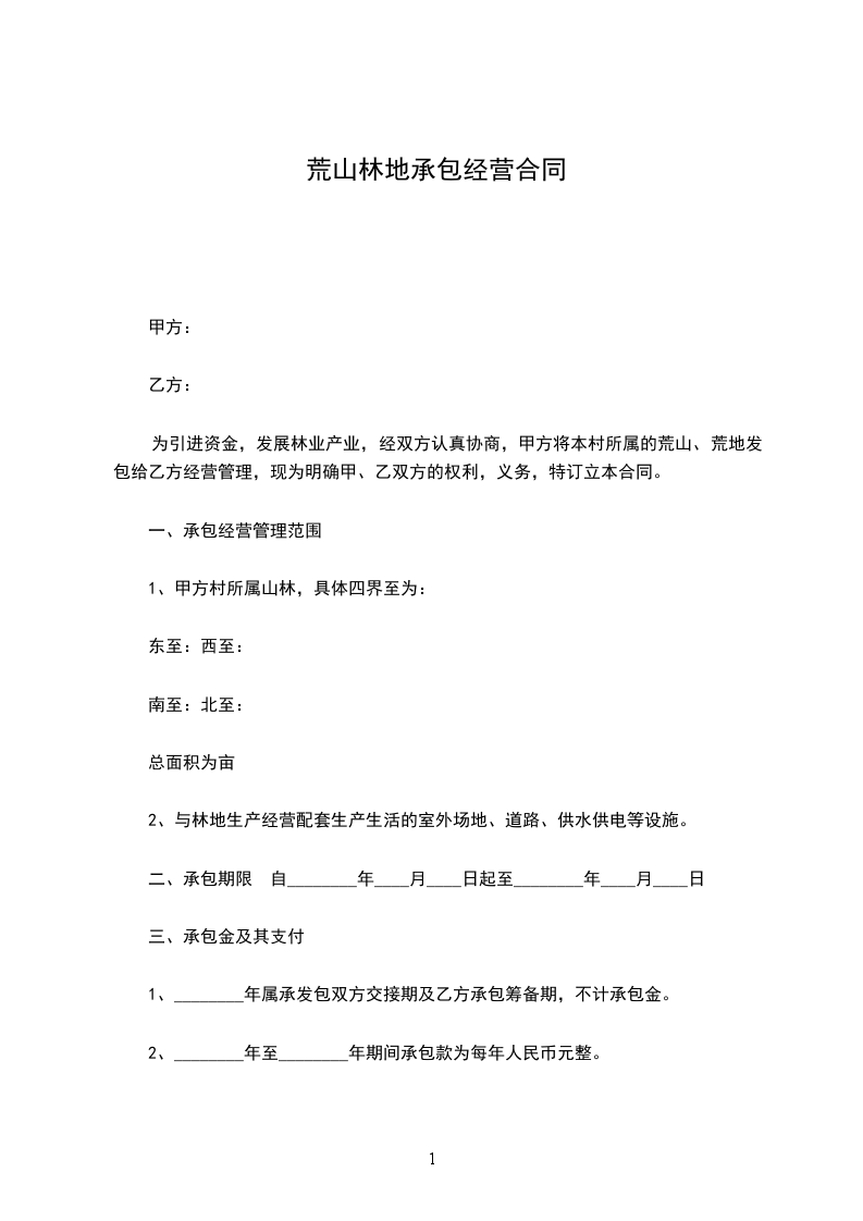 为引进资金,发展林业产业,经双方认真协商,甲方将本村所属的荒山、荒地发包给乙方经营管理,现为明确甲、乙双方的权利,义务,特订立本合同。