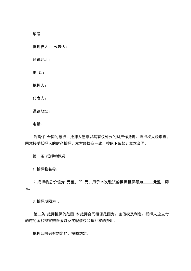 第一条 抵押物概况