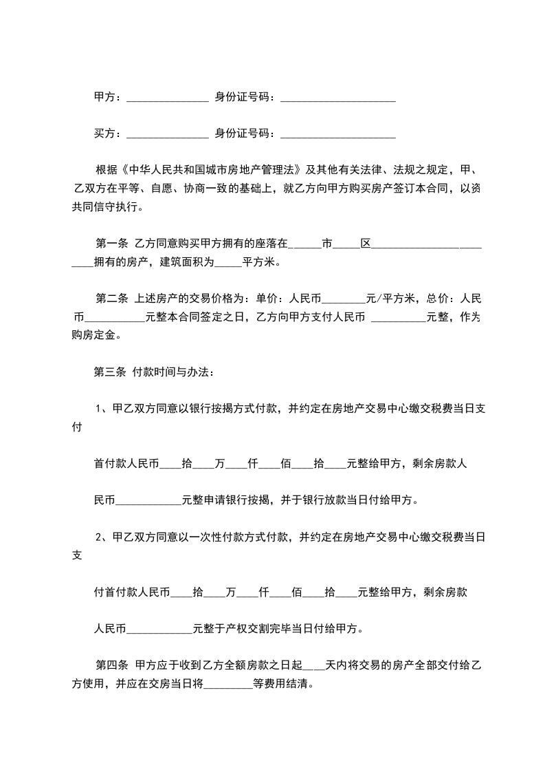 第一条 乙方同意购买甲方拥有的座落在______市_____区________________________拥有的房产,建筑面积为_____平方米。