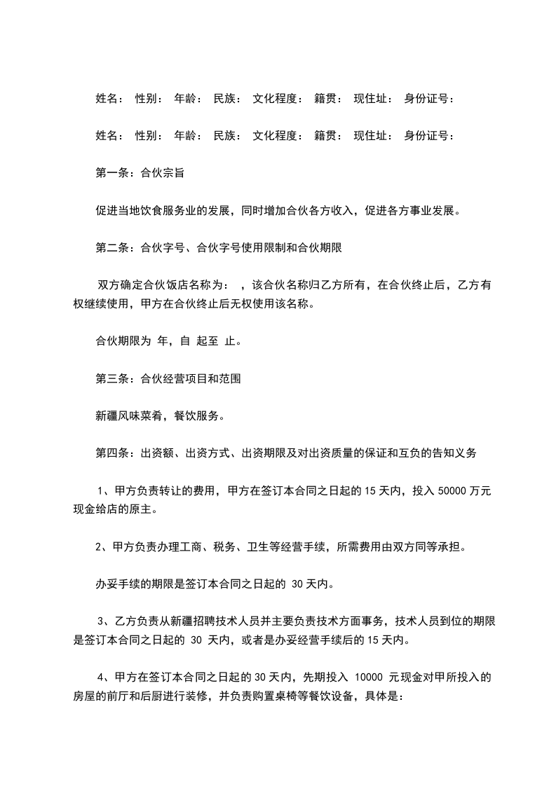 3、如果合伙人违反上述各条规定,应赔偿给对方造成的损失。