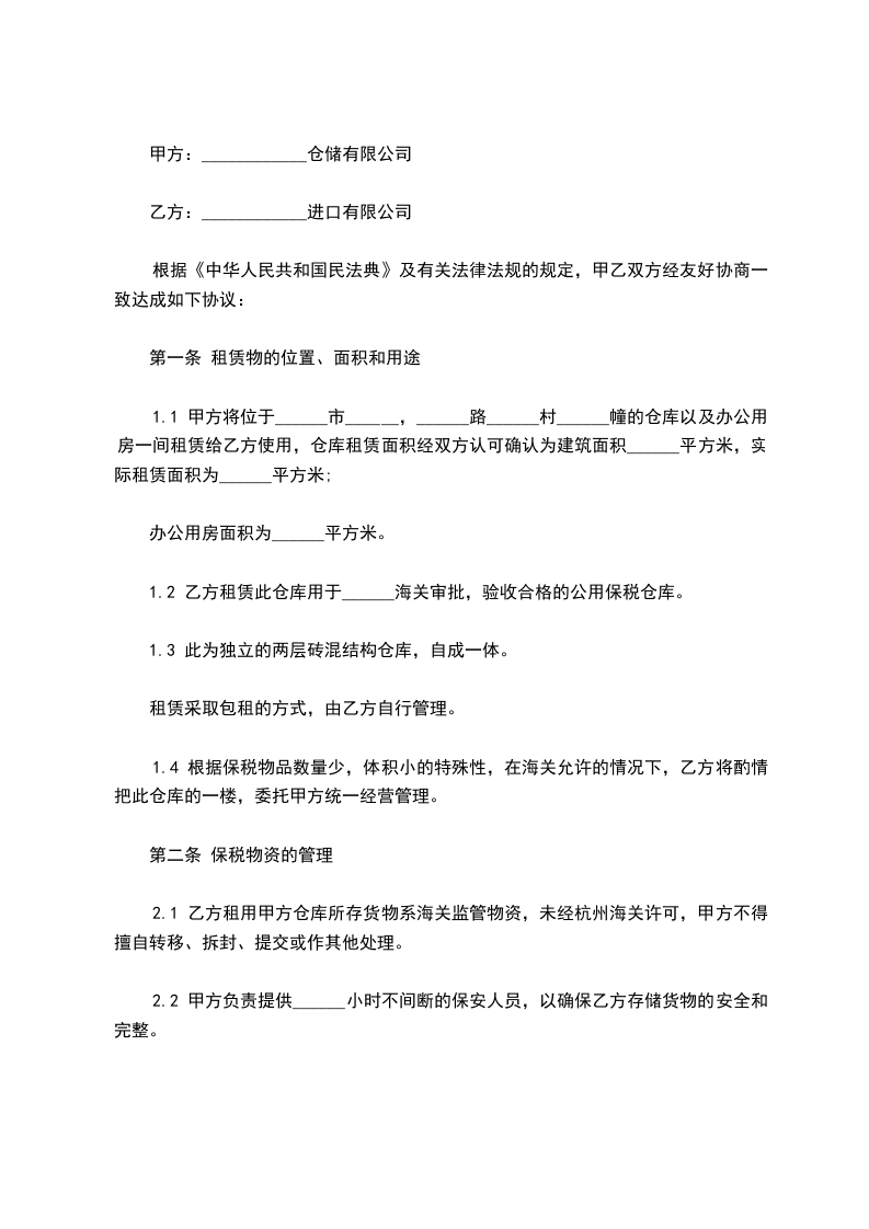 2.1 乙方租用甲方仓库所存货物系海关监管物资,未经杭州海关许可,甲方不得擅自转移、拆封、提交或作其他处理。