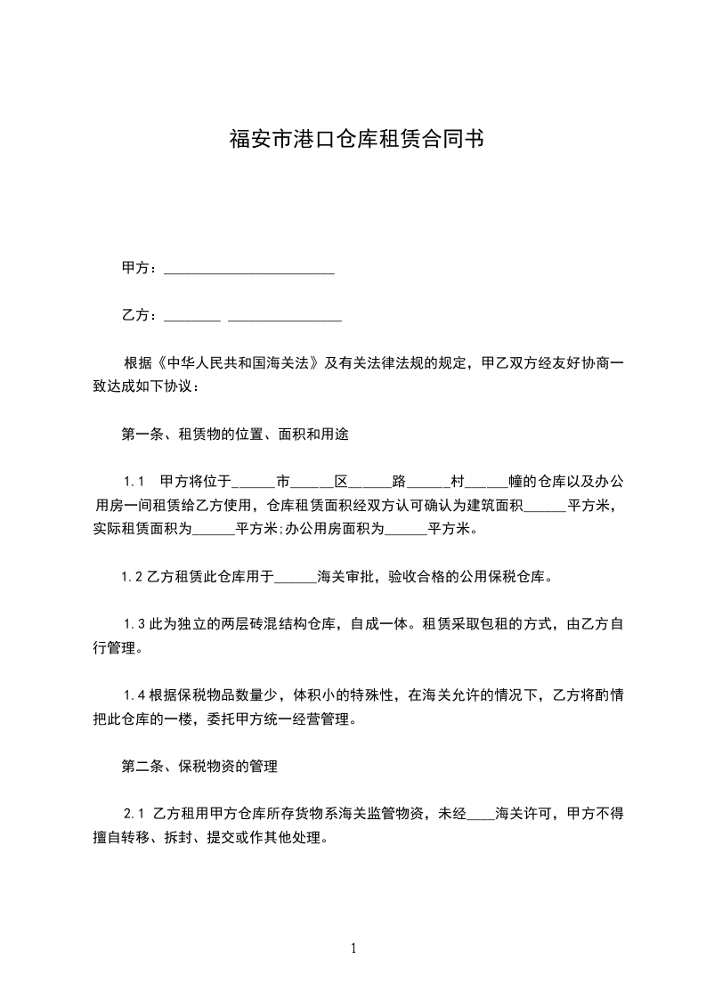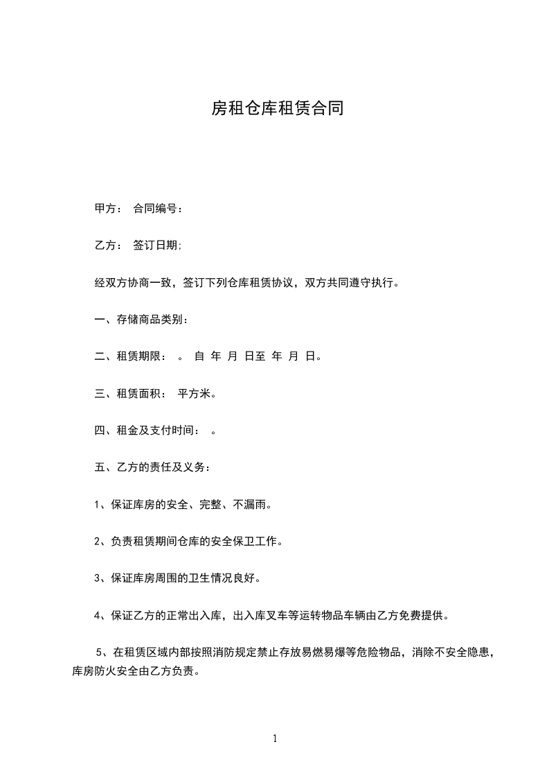 1.1 甲方将位于______市______,______路______村______幢的仓库以及办公用房一间租赁给乙方使用,仓库租赁面积经双方认可确认为建筑面积______平方米,实际租赁面积为______平方米;