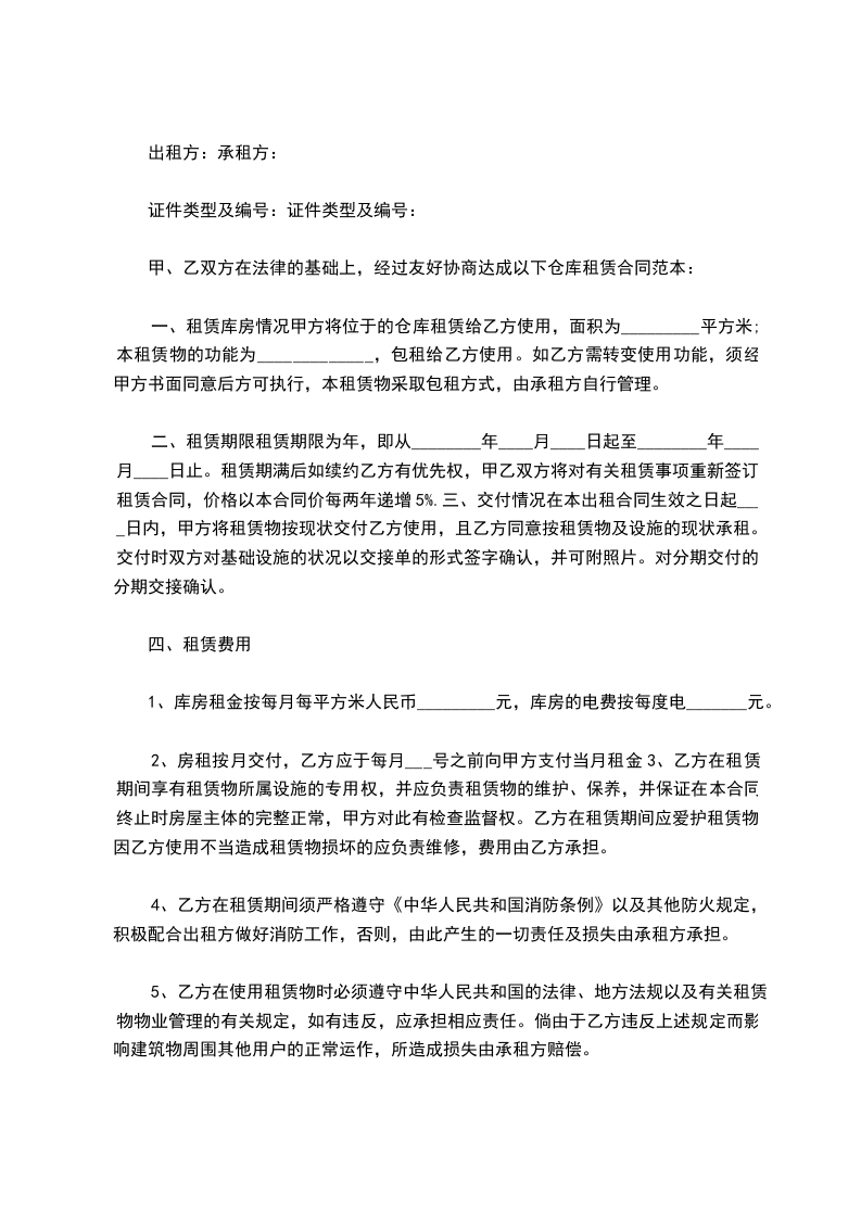 4.1 仓库一楼为每月每平方米人民币______________元,二楼为每月每平方米人民币______元。
