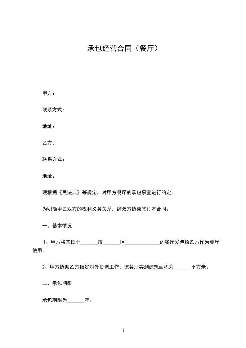 现根据《民法典》等规定,对甲方餐厅的承包事宜进行约定。