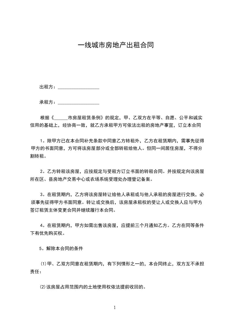 1。除甲方已在本合同补充条款中同意乙方转租外,乙方在租赁期内,需事先征得甲方的书面同意,方可将该房屋部分或全部转租给他人。但同一间居住房屋,不得分割转租。