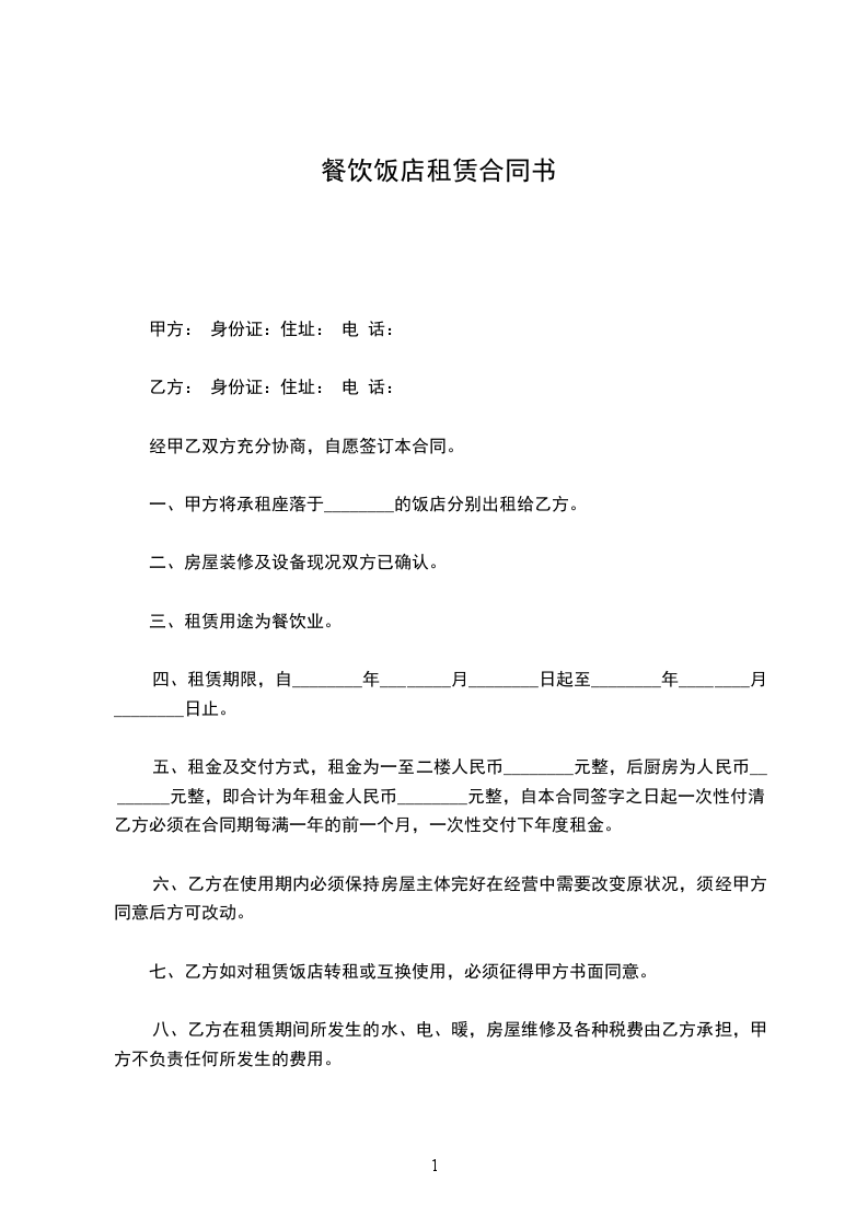 乙方: 身份证:住址: 电 话: