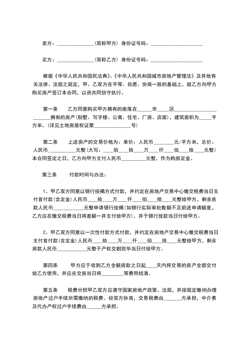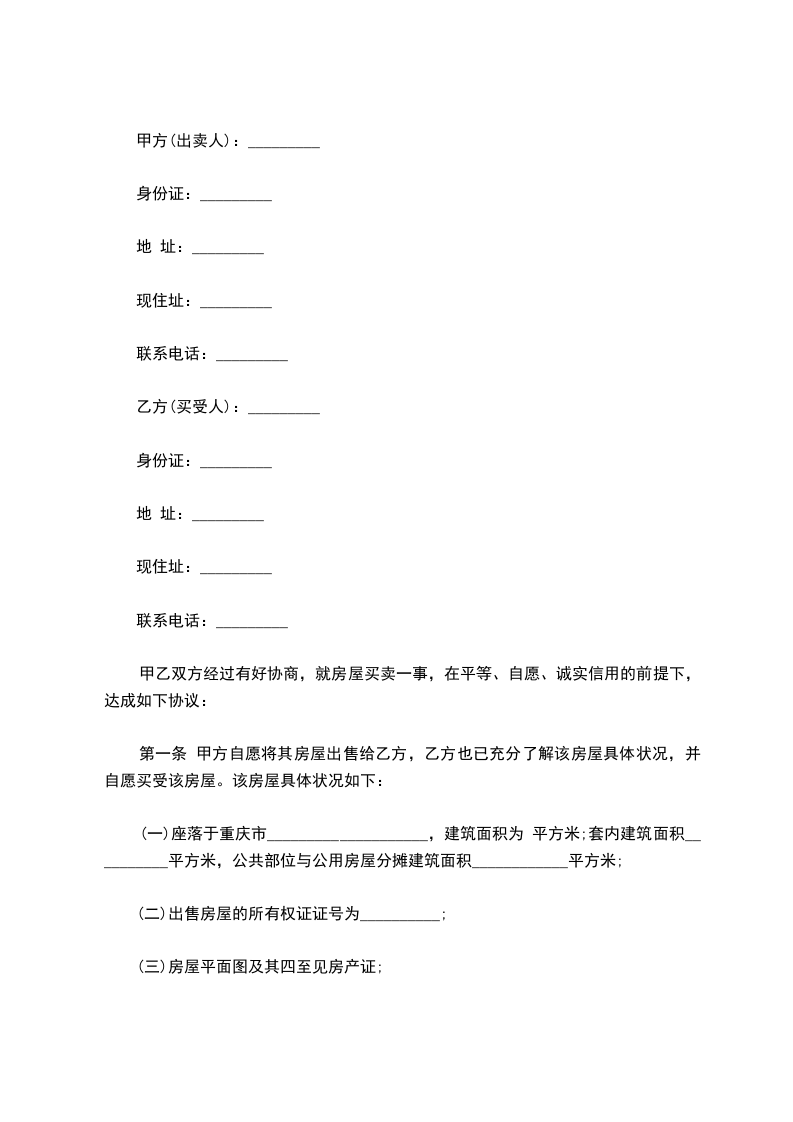 第一条 甲方自愿将其房屋出售给乙方,乙方也已充分了解该房屋具体状况,并自愿买受该房屋。