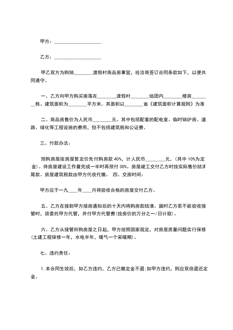 甲乙双方为购销________渡假村商品房事宜,经洽商签订合同条款如下,以便共同遵守。