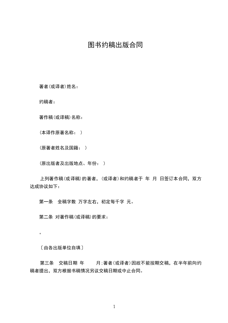 第三条在本合同有效期间,乙方不得将本书稿以任何形式在其它出版单位另行出版。否则,乙方应向甲方偿付违约金_元。