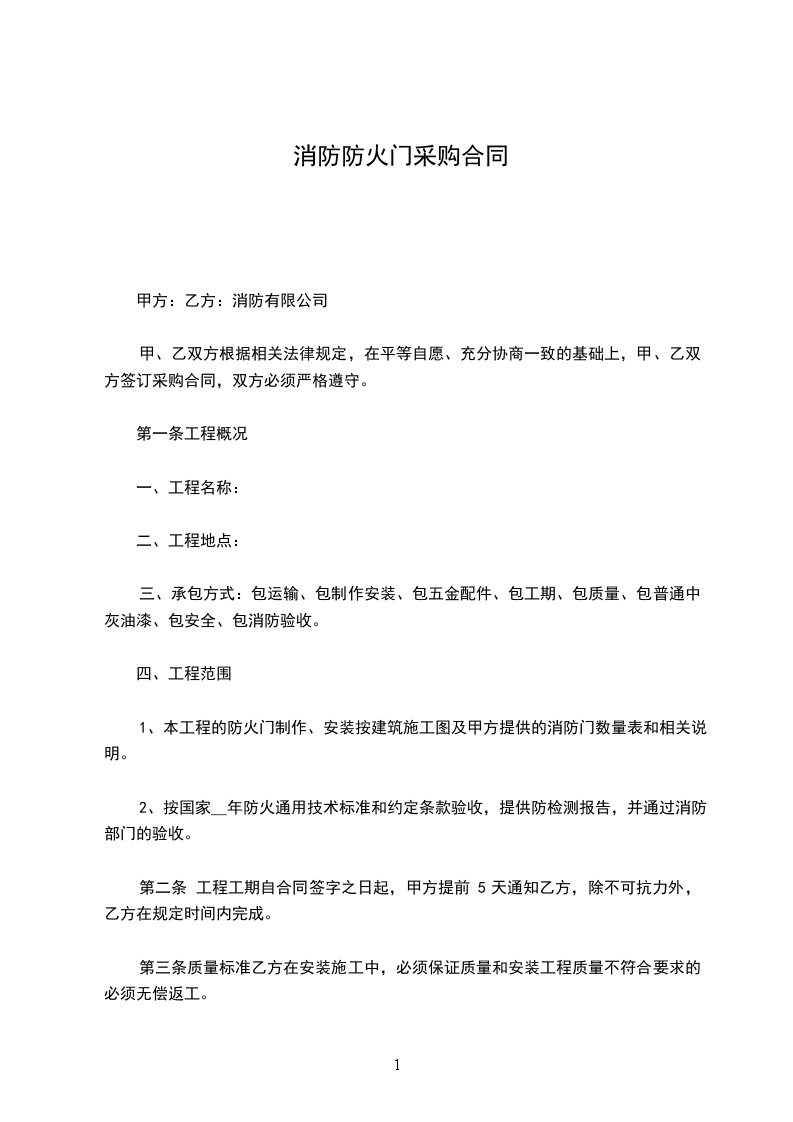 1、本工程的防火门制作、安装按建筑施工图及甲方提供的消防门数量表和相关说明。