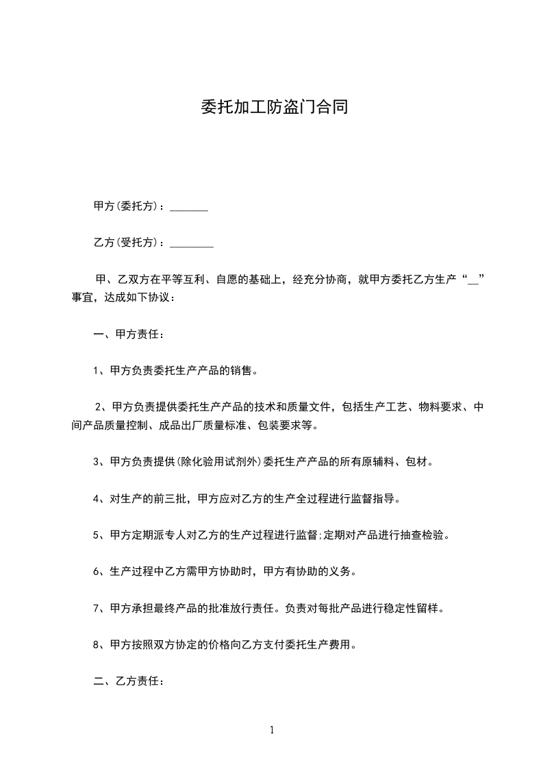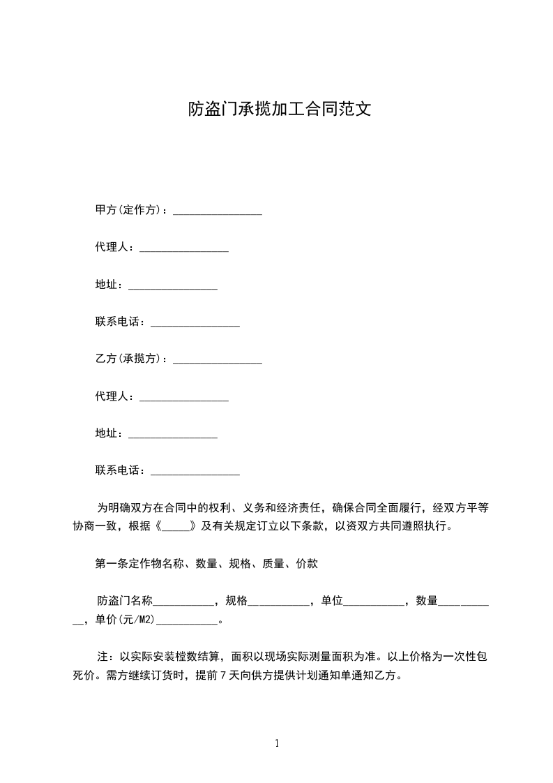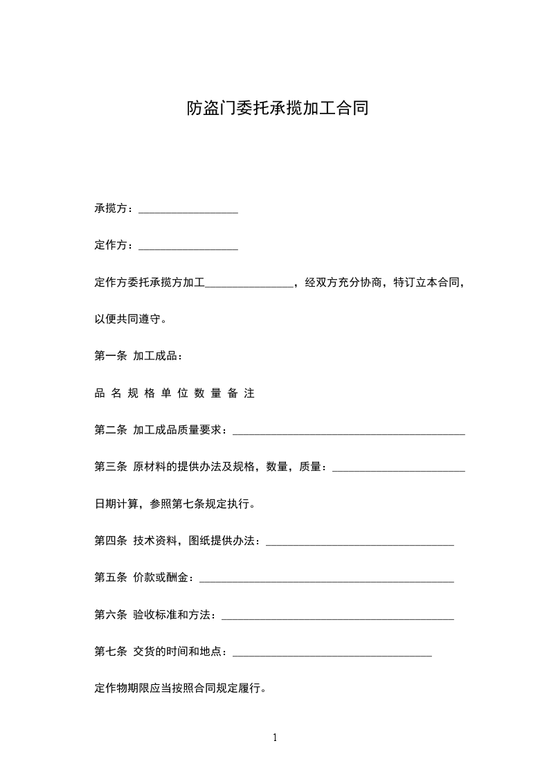 定作方委托承揽方加工________________,经双方充分协商,特订立本合同,
