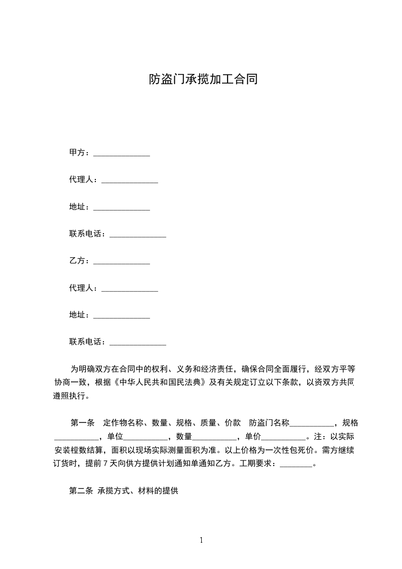 第二条 加工成品质量要求:__________________________________________